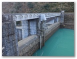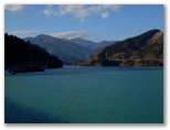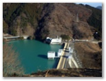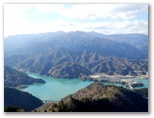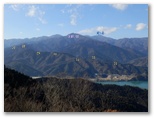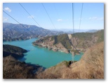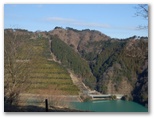エレベーター内のアナウンスで、天気の良い日には、天端の展望塔から横浜ランドマークタワーとベイブリッジが見えると聞いたので、行ってみました。目を凝らして探します... が、どちらも見つけられませんでした。でもそんな遠くのものは、山上で探せば済むこと。ここでは、ダムの下流を見下ろしたり、湖水を前景に丹沢を眺めたり、極上の景観が欲しいままです。しかも、完全な貸し切り状態! 神の造った傑作と、人間の造った傑作とを鑑賞する、特別招待席でした。
