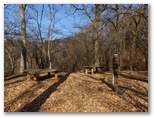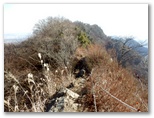 次は仏果山に行き、また展望台に上りました。丹沢と宮ヶ瀬湖のパノラマは、高取山展望台のそれと似ていますが、少し違う視角で望めます。特に先ほど登ったばかりの高取山、行く手の八州ヶ峰、穏やかそうな中津川の流れ、秘密ありげな村道10号橋など、近場はよく見えました。十分に展望を楽しんだので、山頂広場に下りて昼食にします。ぽかぽかと日の当たる山頂。きょうの行程は、ここ仏果山が中間点です。これより南方の尾根道は、やや険しくなります。
