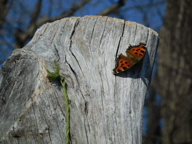 -- 山頂標柱に、きょう7頭目のヒオドシチョウ。14:36