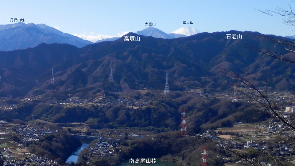 南高尾山稜より望む、高塚山と石老山