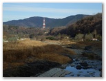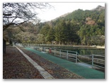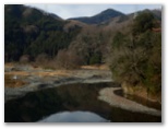 旧沈殿池の裏門のような出入り口から北に折れ、300mほど行くと、道志川の右岸に出ます。堤に上がると、上流側にコンクリート造りの弁天橋があり、その彼方に高塚山も望めました。この弁天橋まで来れば、もう道に迷う心配はありません。詳しい道案内を書いてくれた「悠歩悠遊」の作者の方に感謝です。弁天橋からは、上流側にも下流側にも好展望がありますので、少しゆっくりして行きましょう。