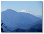 山頂を辞すとすぐ、意外な場所に三等三角点がありました。三角点は普通、見通しの良い地点に設置するものですが、樹木の繁り方が変化してきたのでしょう。登山道はゴツゴツした露岩の尾根だったり、植林の中を通り抜けたりと、変化があります。明るく日の差す尾根道では自ずと富士山に目が行きましたが、次第にコントラストが薄くなって行きました。他方、樹間に見え隠れする相模湖は、深い青色が美しく、もうしばらくそのままでいてくれ!と思いました。