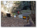 小さな車両ゲートの脇を抜け、さらに先で大きな車両ゲートを通過します。ここから5分ほど林道を登って行くと御飯場橋で、その7分後、次の小野橋に到着しました。ここまで林道は1本道で、間違えようはありません。小野橋のすぐ手前にカーブミラーがあり、その左側の踏み跡から山道に入りました。おそらく林業関係者の仕事道だと思います。