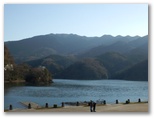 プレジャーフォレスト前バス停から、三ケ木経由で橋本駅に戻ろうと思っていたのですが、バスが来るまでの時間が長かったので、すぐに来た相模湖駅行きに乗りました。事前に時刻表を調べておかなかったのですが、平日の昼の便数は多くありません。せっかくなので相模湖公園で下車し、相模湖畔からもう一度石老山を眺めました。霊山のような風格のある山容が、美しい湖水と一体になっています。高塚山は慎ましく、姿を隠していました。
