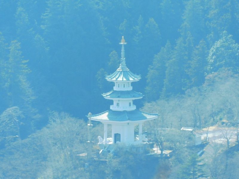 -- 竹寺鐘楼より、鳥居観音の「玄奘三蔵塔」を望む。