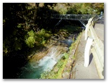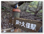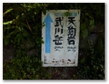 バス停の先で橋を渡り、郵便切手を売る店を右に見て、入間川沿いの道を上流へと歩きます。ここでは名栗川と呼ぶ方が適切かも知れません。流れが清らかで、早くも「きょうはここに来てよかった!」と思いました。流れが岩を滑て落ちるところなど、「おおっ、名栗ブルーだ!」。でも、すぐに名栗川とはお別れです。右折して、西山荘の方向にコンクリート道を登ります。すると、小さな案内板があり、「天狗岩(約40分)から武川岳(約90分)へ」と書かれていました。