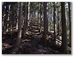カラマツ林を経て、杉林に入ると、登って来る若者と出会いました。「これからどちらまで?」「二子山にとても景色のよいところがあるので、きょうはそこまで。」「ああ、あそこですね。行ってらっしゃい!」「はい、ありがとうございます!」この人の後姿を見送りましたが、このとき午後2時40分。帰り道は暗くなるでしょう。でも帰宅後に気づきました。あの若者は、『ダイヤモンド武甲山』を見に行ったのだと!