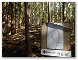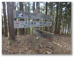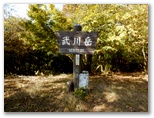 ずっとこんな道が続けばいいなあ、と思っていると、武川岳山頂の変則十字路が見えてきました。そして十字路に立つと、目の前が山頂広場です。武川岳の山容から、広い山頂広場を予想して来たのですが、そこは決して広すぎはしない、陽だまりの広場でした。横瀬町の道標と、名栗村の山頂標とが立ち、ベンチが4脚あります。南面のみ景観伐採され、奥武蔵の南部や奥多摩の一部を望めますが、北西方向にある武甲山は見えません。ベンチの一つに座って、昼食にします。