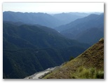 その浮いた岩は、何度も揺さぶって、下に蹴落としておきました。岩石の状態は、風雨その他の作用で、変化します。今安全な岩が、いつまでも安全だとは限りません。天狗岩は人にお奨めするほど楽しい岩場だとも思えませんが、もし登るのなら、ヘルメットの着用を強くお奨めします。ともあれ、慎重に登って約10分、天狗岩の頂上に達しました。ここにも少し展望があります。ここで小休止と水分補給。これより先、二子山の手前まで、大きな急登はもうありません。