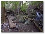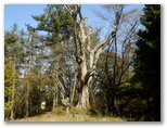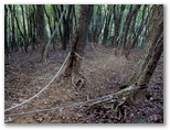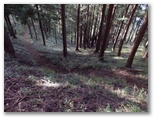 石段No.3までの道は、地理院地図にきちんと示されています。さて、石段No.3を登ると、いよいよ本格的な山登りです。相変わらずの杉林で、その木々から発散されたフィトンチッドが充満していました。自然界は、微視すると生存競争の激しい戦場ですが、巨視的には安定域で調和を成すところに妙味があります。これを「地球生命圏ガイア」の概念で説明する科学者もいます。そこに人間の活動が作用したことによる、劇的な光景を目にするまで、あと15分でした。