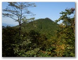 前武川岳への尾根歩きは、快適でした。木々の葉の緑、黄、オレンジ色が太陽光を透過して、とてもきれいに見える季節と日和です。右手の樹木を透かして、台地状の武川岳が辛うじて見えますが、冬枯れの季節なら、もっとよく見えて楽しいことでしょう。前武川岳の10分ほど手前で、左手に大持山、子持山、武甲山がどうにか見えました。きれいな写真になるような眺望ではありません。けれども、歩いている場所自体が美しいので、歩く喜びがあり、足どりは軽快です。