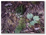 いくつかの起伏を越えて、ようやく二子山雄岳への急登に差しかかった時は、ため息が出そうでした。これからまた標高差120mを登り返すのです。楢ノ木尾根の泣坂ノタルを想い出しました。まあ、仕方ありません。10分程度の辛抱ですから、何とか花でも探しながら登りましょう。そして雄岳の肩に至ると、また武甲山と両神山のすてきな展望がありました。芦ヶ久保駅から登って来た人にとっては、劇的な展望地と言えるでしょう。雄岳山頂自体は展望に優れません。
