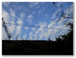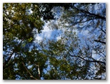 雌岳は右から巻くようにして登頂しました。こちらも展望はありません。これより芦ヶ久保駅への下山路は二つありますが、兵ノ沢コースの方が少し短いので、迷わず右に進みました。急勾配の登山路ですが、太くて握りやすいロープが延々と張られていて、大いに助かります。ロープ場を過ぎ、770m峰の手前で左に下りると、小区間ながら私の好きなカラマツ林もありました。相変らず青い空と白い雲もあって、ランラン、軽快な足どりで下って行きます。