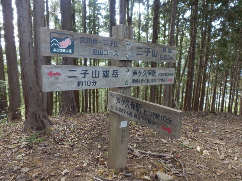 -- 二子山雌岳。この先、右も左も急下り。14:13