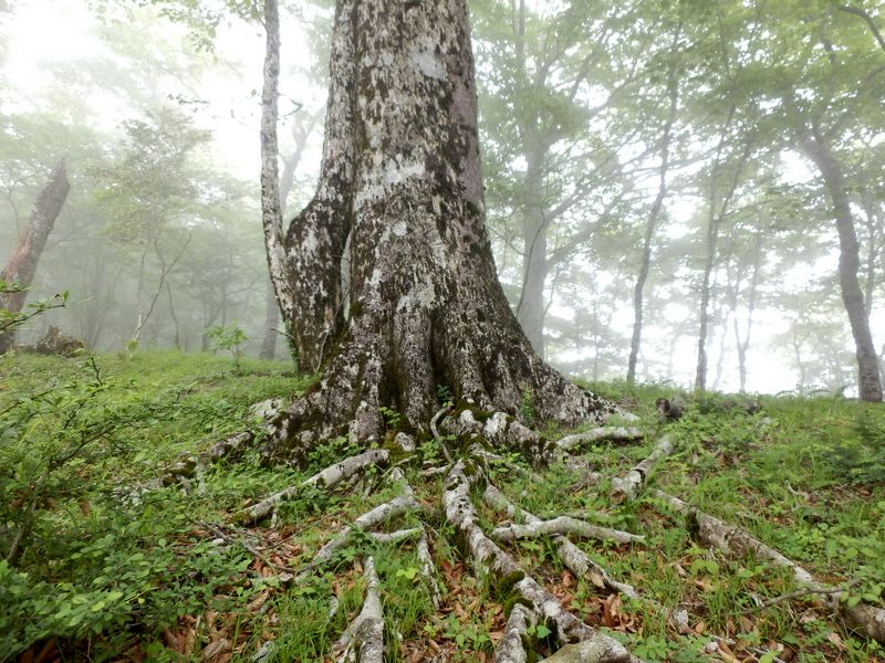 -- ブナの根。いくつものバットレス。12:12