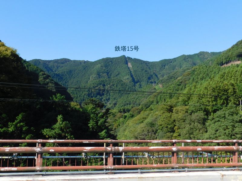-- 白川橋より望む、これから歩く稜線と鉄塔15号。