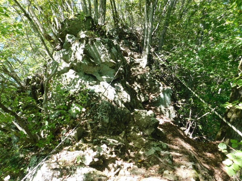 -- 痩せた岩稜を慎重に登る。