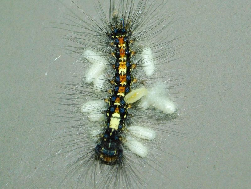 -- 寄生されたマイマイガの幼虫:青点のみの個体。