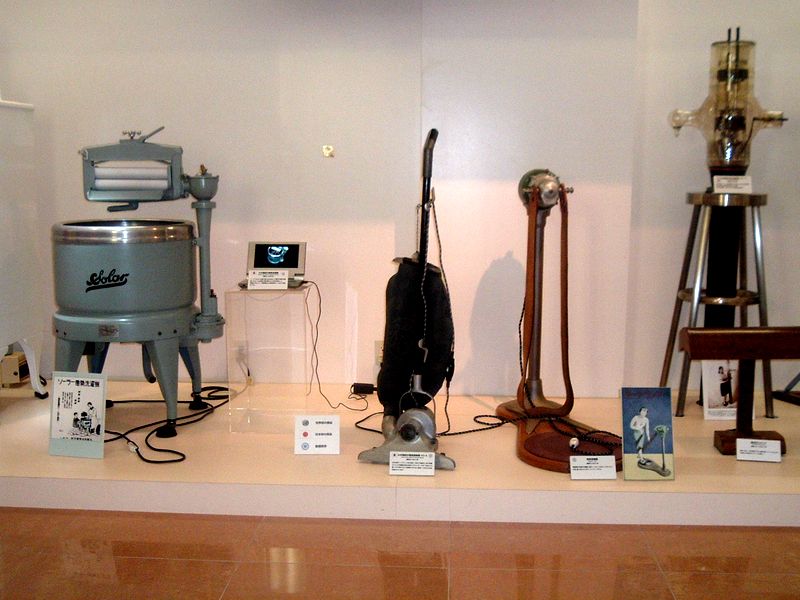 -- 左より、洗濯機、掃除機、ラジオ放送用大電力送信管。