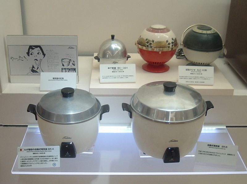 -- わが国初の自動式電気釜:1955年、ゆで卵器、球形ラジオ