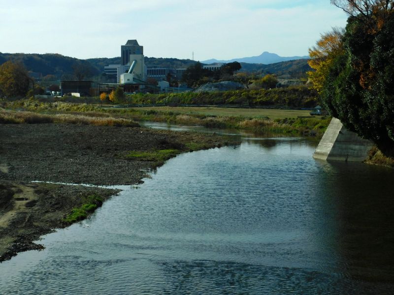 -- 入間川上流方向に、駿河台大学と大岳山。