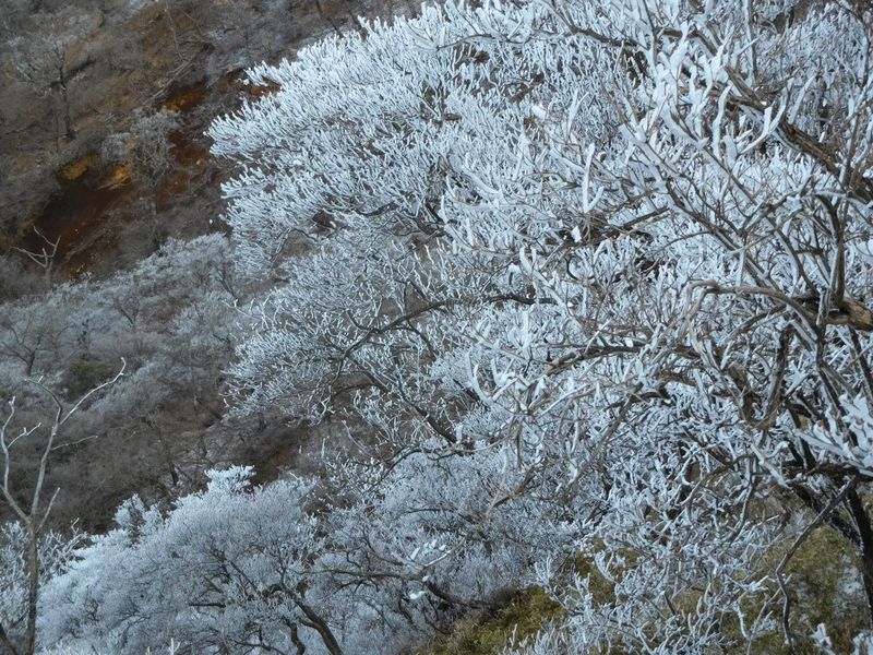 -- シロヤシオの木々は霧氷の花盛り。9:35