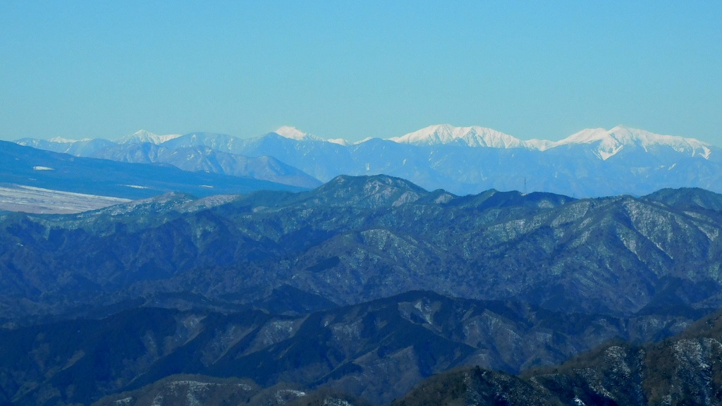 -- 南アルプス遠望:光岳~聖岳~赤石岳~荒川三山。