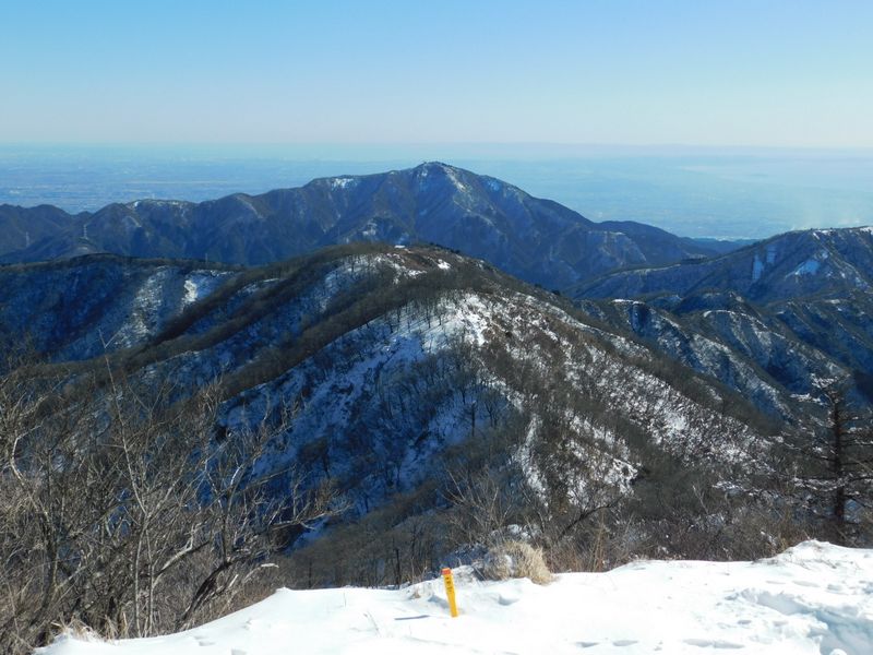 -- 大山の彼方に、東京湾と房総半島。