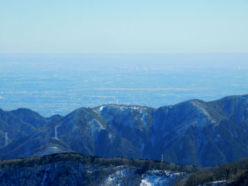 -- 大山西尾根の彼方に、横浜みなとみらいと東京湾。