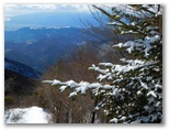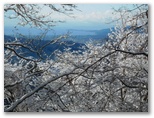 2019年2月1日(金) ◆1月31日夜、南岸低気圧が関東地方沿岸部に雪を降らせた。よし、丹沢に行こう! 早いほどいい。◆渋沢駅発大倉行きの一番バスに乗る。満席で立ち客が3、4人。発車するとまもなく、モルゲンローテの表尾根が見えた。空は快晴。よかった!◆大倉尾根を登り始めると、大枝小枝の着雪が美しい。新雪はどんな白よりもきれいな白なのだ。細かな梢にまで手抜きなく付着して、遠目には霧氷みたいに見える。そして朝日が当たる。キラキラ輝く雪花。真っ青な空。◆だが予報以上に気温が高い。しかもどんどん上昇中。きょうの雪花はすぐに消えるだろう。早く登頂したい! ◆山も、空も、海も、あらゆるものが美しい。感動を写真に残したくて、同じようなシーンを何度も撮影してしまう。今回は特に箱根の山々が、立体感も豊かに美しい陰影を見せていた。◆塔ノ岳は、登頂直前の空が最も青い。まさに藍より青い空だ。山頂標に取り付けられた温度計を見ると、マイナス3℃。風がとても強く、動かないと寒い。◆山頂で、どの方向を見ても霧氷がないことを見て、ピストン下山を決めた。塔ノ岳山頂の展望に優るものは、めったにない。尊仏山荘の北側、お気に入りの場所に腰を下ろし、蛭ヶ岳、八ヶ岳などを望みつつ、熱いコーヒーをすすって、山頂を辞すことに。◆下山開始時の温度計は0℃ちょうど。念のため軽アイゼンを履いた。転ばぬ先の杖だ。◆花立山荘以下では、登山道の雪が融け始めていた。日当たりの良い場所では、シャーベットやグチュグチュになった箇所も少なくない。雪花も消えていた。◆大倉では紅白梅の咲き始め。風の吊橋に行くと、朝の雪に代わって、梅の花が三ノ塔と二ノ塔を飾っていた。 ◎ 渋沢駅 6:48 == 7:00 大倉バス停 7:10 --- 7:51 見晴茶屋 7:53 --- 8:25 駒止茶屋 8:27 --- 8:47 堀山の家 8:52 --- 9:12 萱場平 9:20 --- 9:43 花立山荘 9:48 --- 10:22 塔ノ岳 10:57 --- 11:28 花立山荘 11:34 --- 11:53 萱場平 11:55 --- 12:10 堀山の家 12:18 ---(富士見の松で立ち話約10分)--- 12:45 駒止茶屋 12:47 --- 13:17 見晴茶屋 13:17--- 13:42 丹沢ベース 13:47 --- 14:02 大倉バス停 14:22 == 14:34 渋沢駅 全6時間52分 単独 ❀❀❀❀ ❢❢❢