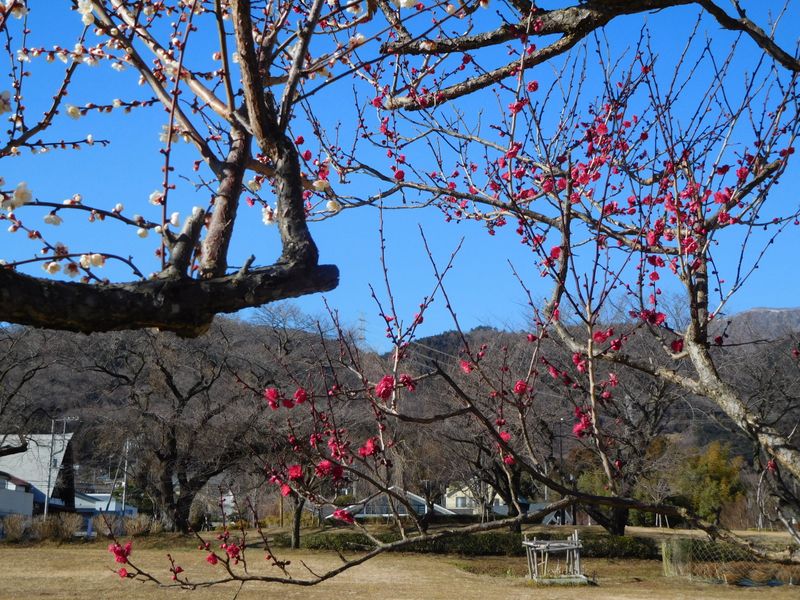 -- 紅白梅が咲き始めていた。14:09