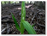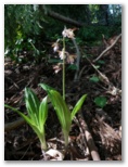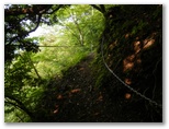 宮ヶ瀬への長い、長い、下山路。お楽しみは、金冷シで栂立尾根を望めることくらいでしょうか。でも一般登山道に、ササバギンランとギンランとが見られたのは、うれしいことでした。そっとしておきましょう。ところで、844m峰北面の巻き道に、「落石注意」の新しい注意書きが張られていました。「死亡事故がありました」と書かれています。右の斜面を見上げると、確かに転がり落ちてもおかしくなさそうな大小の岩がたくさんありました。