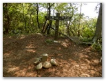 栂立尾根には、登山中に当面の目標となる小ピークが、ほどよい間隔で配置されています。まず最初の目標は、532mのタロベエ峰。ただし、タロベエ峰自体にはこれといったものがないので、すぐ手前の送電鉄塔32号の敷地が、よい休憩地になります。栂立尾根では唯一の緑草地で、ヤマビルの心配もなさそう。私は鉄塔のコンクリート台に腰を下ろし、熊蜂を横目に水分補給をしました。北方に展望があり、仙洞寺山、南山、宮ヶ瀬湖、虹の大橋などを望めます。