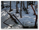 この脚立は、下から二段目のステップ(横パイプ)が無くなっていました。恐る恐る上ります。脚立の最上段に足をかけてはなりません。これは脚立使用時の鉄則です。十分な高さまで上ったら、脚を回して鹿柵の反対側のステップに移動します。でも、いつ壊れるか分らない脚立に乗るのは、なかなか怖いもの。きょうは、あと何回脚立に上らねばならないのでしょうか。