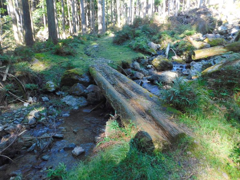 -- 雰囲気の良い木橋とせせらぎ。9:03