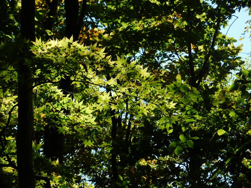 -- このあたりのモミジは、ほとんど緑色。9:55