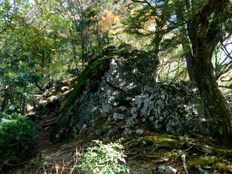 -- 登山路に、大岩がデーン。12:48