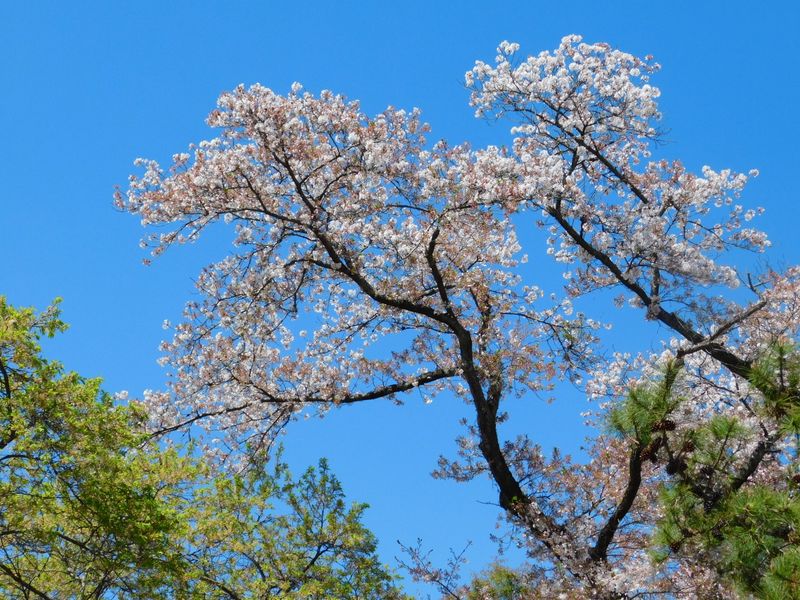 -- 高尾梅郷、遊歩道梅林の桜。9:59