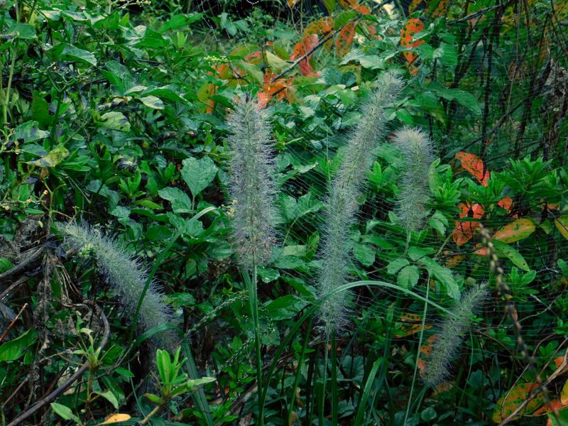 -- チカラシバとクモの巣。