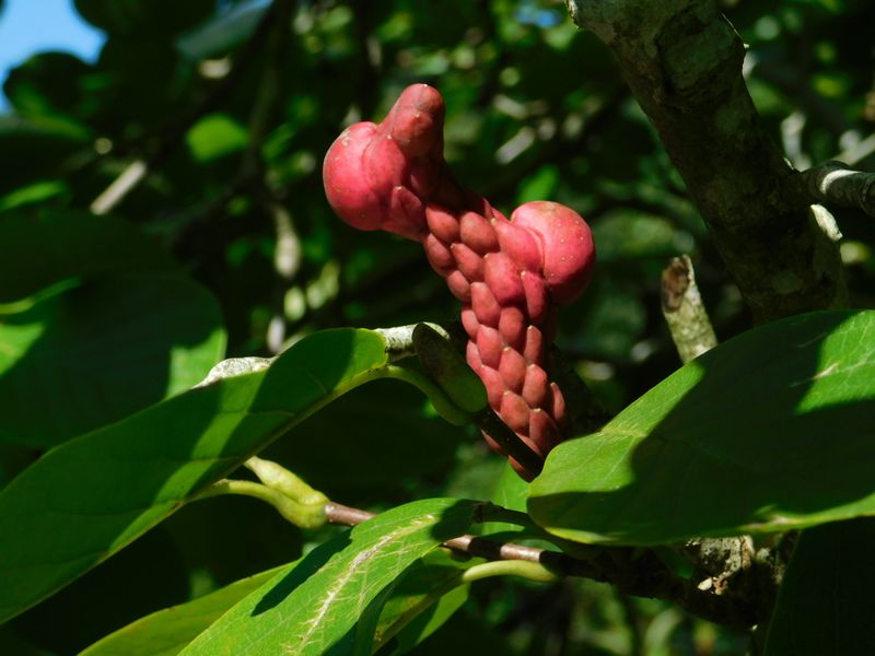 -- コブシの実が赤くなった。