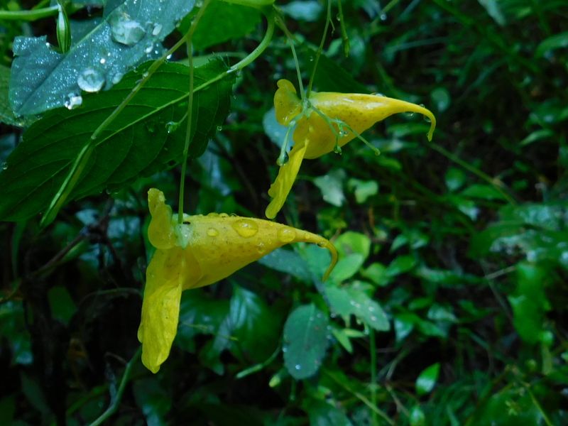 -- キツリフネが、ツリフネソウの隣に咲いていた。
