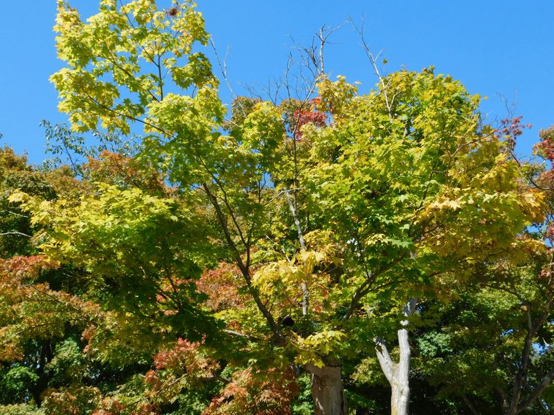 -- 山頂の木々がほんのり色づき始めた。12:05