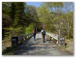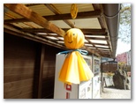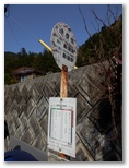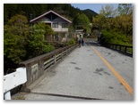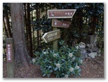 これより舗装された参道を下ります。山と高原地図では、金比羅神社跡から連慶橋バス停までの所要時間が25分となっていますが、私たちが歩いたら、正味45分ほどかかりました。まず参道の坂を下り切ると、鳥居の集落を貫く車道に出ますが、これはバス道路ではありません。南に150mほど行くと「鳥居観音公衆トイレ」があり、さらに300mほど先の連慶橋を渡ると、バス停です。タイミングよく、わずか4分待ちで飯能駅行きのバスに乗れました。