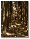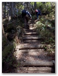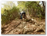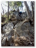 蕨入橋で名栗川を渡ります。林道を約20分歩いて、その終点に至りました。右手の小沢を越えて、登山道に取り付きます。急登ですが、足場は悪くありません。適度にジグザグが切ってあるので、あまり息を切らすことなく高度を稼いで行けました。間伐で倒された木がゴロゴロいっぱいの杉林は、林床まで太陽の光が差し込んでいます。平地がほとんどない地域なので、林業に力を入れているのでしょうか。たとえ採算割れでも、山を守ることは生命を守る大切な仕事です。