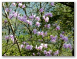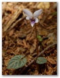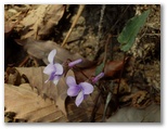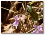 藤棚山を過ぎた辺りから、小さなすみれの花が目にとまるようになりました。マキノスミレ、フモトスミレ、フイリフモトスミレなどです。マキノスミレとフモトスミレの交雑種かも知れないすみれもありましたが、私にとってすみれの同定は、なかなか難問。交雑種だったり、非典型だったりすると、お手上げです。もし種名が間違っていたら、教えてください。一方、金比羅尾根のアカヤシオは、ごくわずかに残り花がありましたが、実質的に終わっていました。