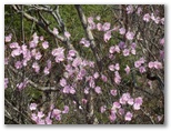 「優美な五つのハート花弁に水彩画のような彩色、木綿の夏服のようなシワ、素朴な和菓子にも似た質感。そして、山奥の岩場に咲く不思議。」これは、私が5年前に都県境尾根でアカヤシオを見て心躍った時の描写です。シロヤシオもそうですが、地域によって、微妙な差異はあります。自然界では実生なので個体差もあり、花の色の薄い木や、濃い木があります。いずれも一輪一輪がきれいで可愛らしく、集団美もすばらしい。でも、山奥に足を運ばなければ見られません。