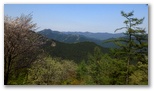 717m峰と金比羅山の中間あたり、ヤマザクラの咲く広場にやって来ました。天高く伸び上がった、満開のヤマザクラ! その限りなく白色に近い桜色の花と、明るい萌黄色に移り行く新葉とに、樹齢とは無縁の生命感があります。この広場は北面の展望に優れ、大持山、武甲山、武川岳、伊豆ヶ岳などを一望できました。金比羅尾根の数少ない展望地なので、小休止して行きましょう。山を眺めるもよし、山桜を眺めるもよし。笹に交じって、すみれも咲いています。