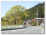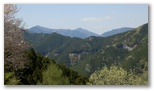 名郷バス停には、きれいなトイレがありました。軽くストレッチをし、長いバス乗車で固くなった体をほぐします。ここで私は名物の「なぐりづえ」を1本借用しました。これより武川岳や大持山へ向かう人は北へ、蕨山に向かう私たちは南へと、それぞれ歩き始めます。きょうは一応、晴天の大安吉日。吹く風がちょっと気になりますが、新緑のパッチワークに彩られた山々は笑っています。小学校の春の遠足の日、あの朝のウキウキした感覚が、ふとよみがえってきました。