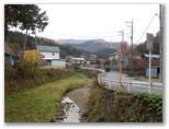 尾根の分岐点(標高442m)で、初めて思案しました。地形図には道が記されていないし、考えようにも根拠がありません。直感で真北の尾根を選択し、下って行くと、三つの石祠が並んでいました(標高402m)。これはしめた! これだけ立派な祭祀所があるからには、良い参道があるに違いありません。傍らの鹿扉を通り抜けると、果たして幅広の楽チン道が、ずっと下までジグザグ状に続いていました。そしてバス道路に下り立つと、何と、そこは「伏馬田入口」でした。