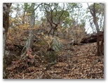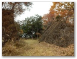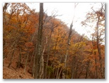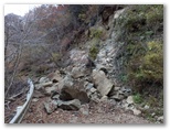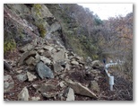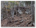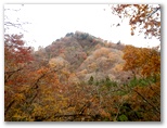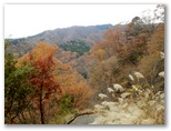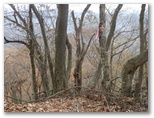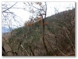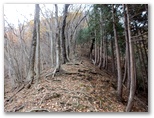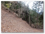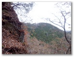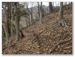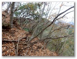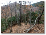 純毛のベストを取り出して着ると、ほどほど体が暖かくなりました。もう冬なのに、白っぽい蝶か蛾が飛ぶミニ草原。紅葉が見られるのは、この辺りまでで、これより高いところでは、枯葉になっています。この先の急登に備え、スリング2本とカラビナをポケットに入れました。必要な場合、最低限のセルフビレイができるようにするためです。特に幕岩の横あたりは、相当な急勾配。幸い、立ち木がかなりありそうです。四駆モード(両手両足)で着実に登りましょう。